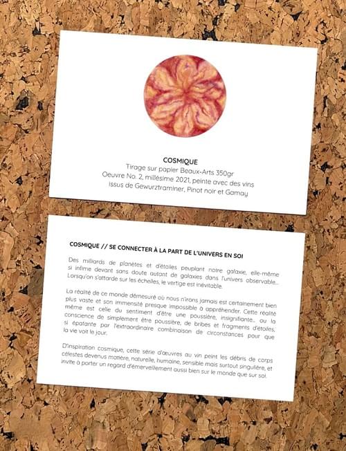 Chaque tirage est accompagné d'un encart indiquant les cépages utilisés pour créer l'œuvre.